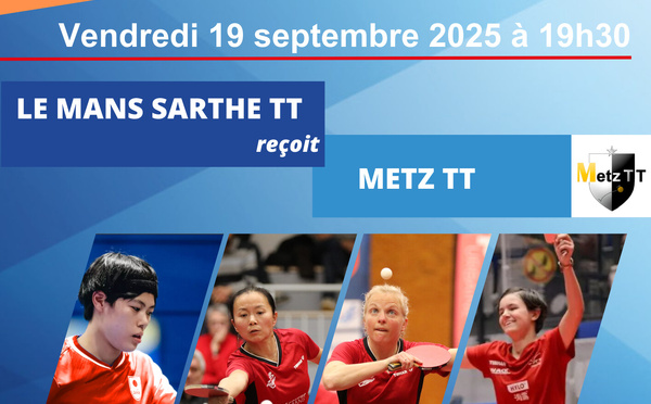 Pour sa rentrée à domicile, l'équipe de Pro A Dames de Le Mans Sarthe TT recevra, le vendredi 19 septembre à 19H30, les Championnes de France en titre et vice Championnes d’Europe : Metz TT dans...