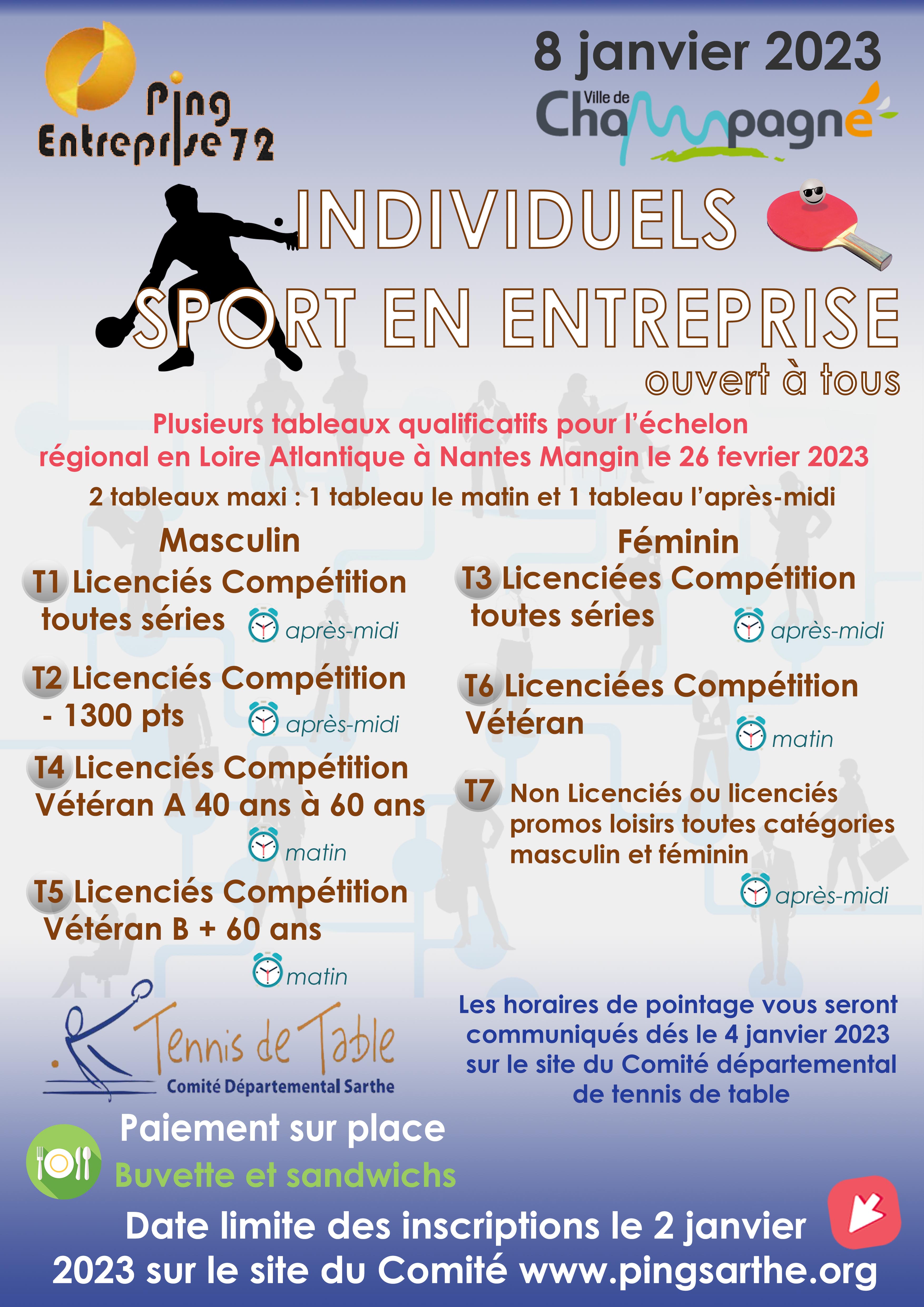 Les inscriptions sont ouvertes, cliquez sur le lien suivant pour participer au prochain tournoi des Individuels Sport en Entreprise.