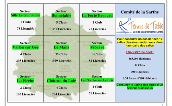 Maison des Sports - Comité départemental de Tennis de Table Sarthe - 29, Bd Saint Michel - 72000 Le Mans - Tel: 02 52 19 21 17 |