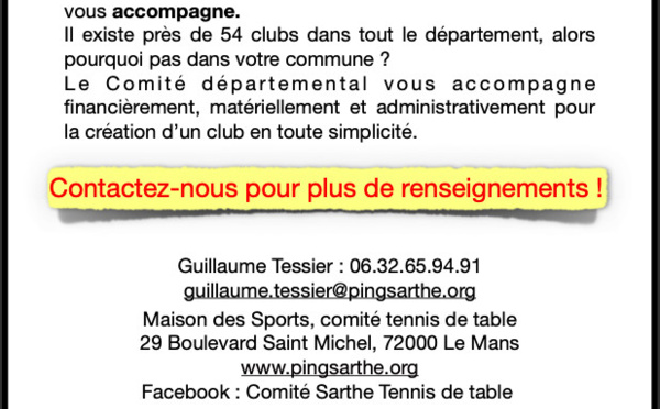 Maison des Sports - Comité départemental de Tennis de Table Sarthe - 29, Bd Saint Michel - 72000 Le Mans - Tel: 02 52 19 21 17 |