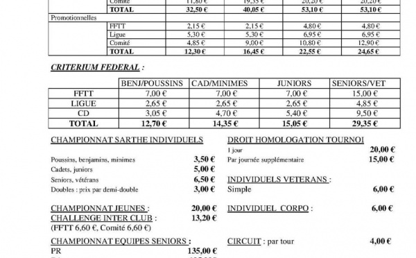Retrouvez le détail des différents tarifs pour les clubs. (affiliations, licences, inscriptions au Critérium Fédéral et aux différents championnats, ...).