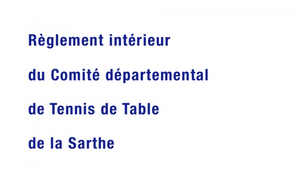 Vous trouverez ci-dessous, le règlement intérieur du comité départemental de tennis de table, adopté lors de l'Assemblée générale extraordinaire du 27 janvier 2012.