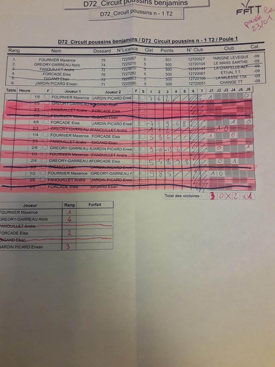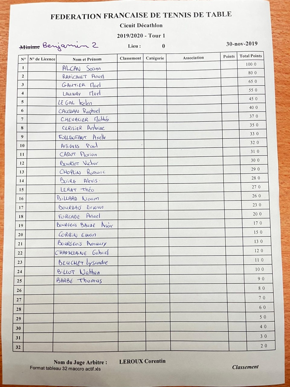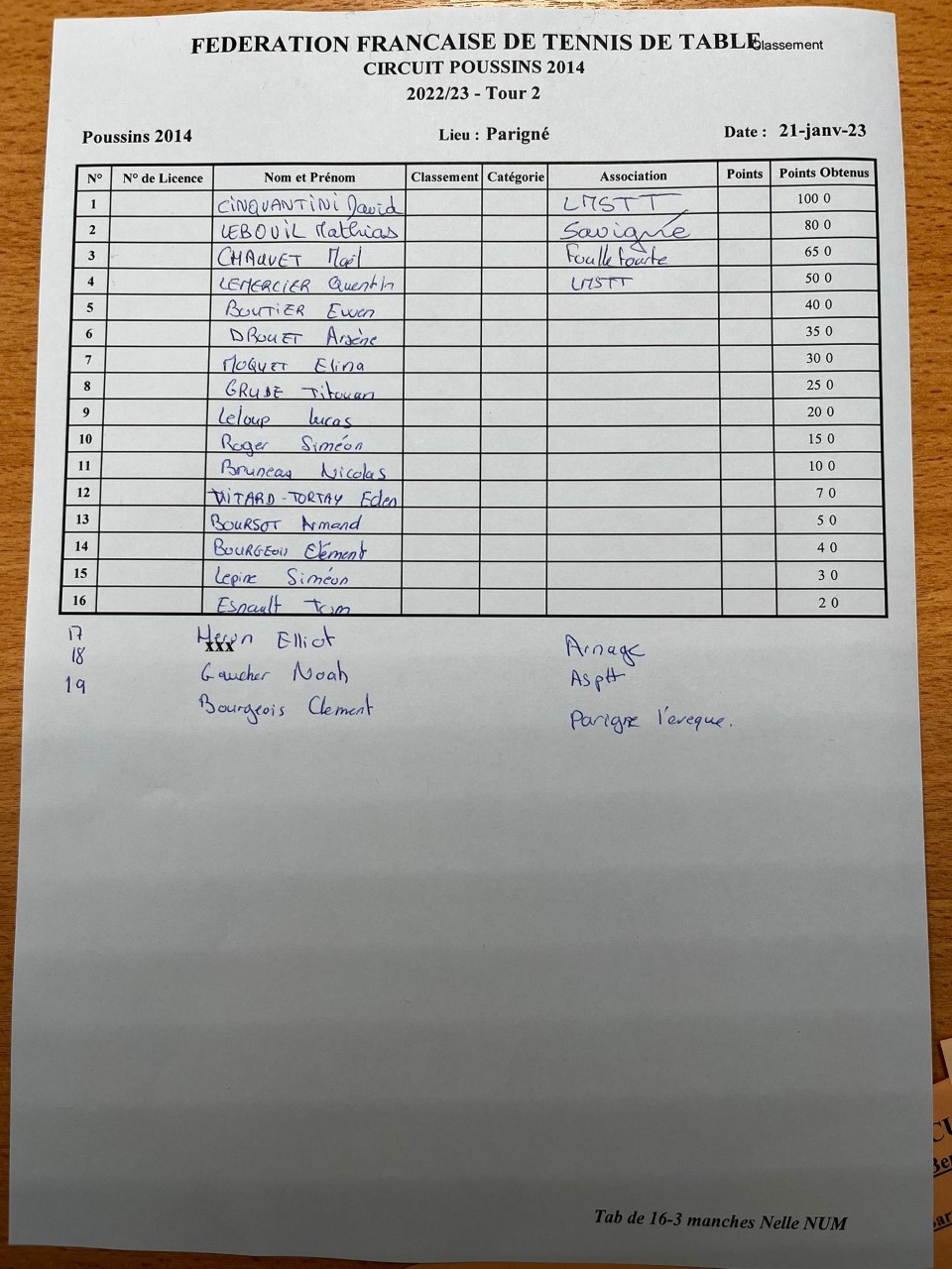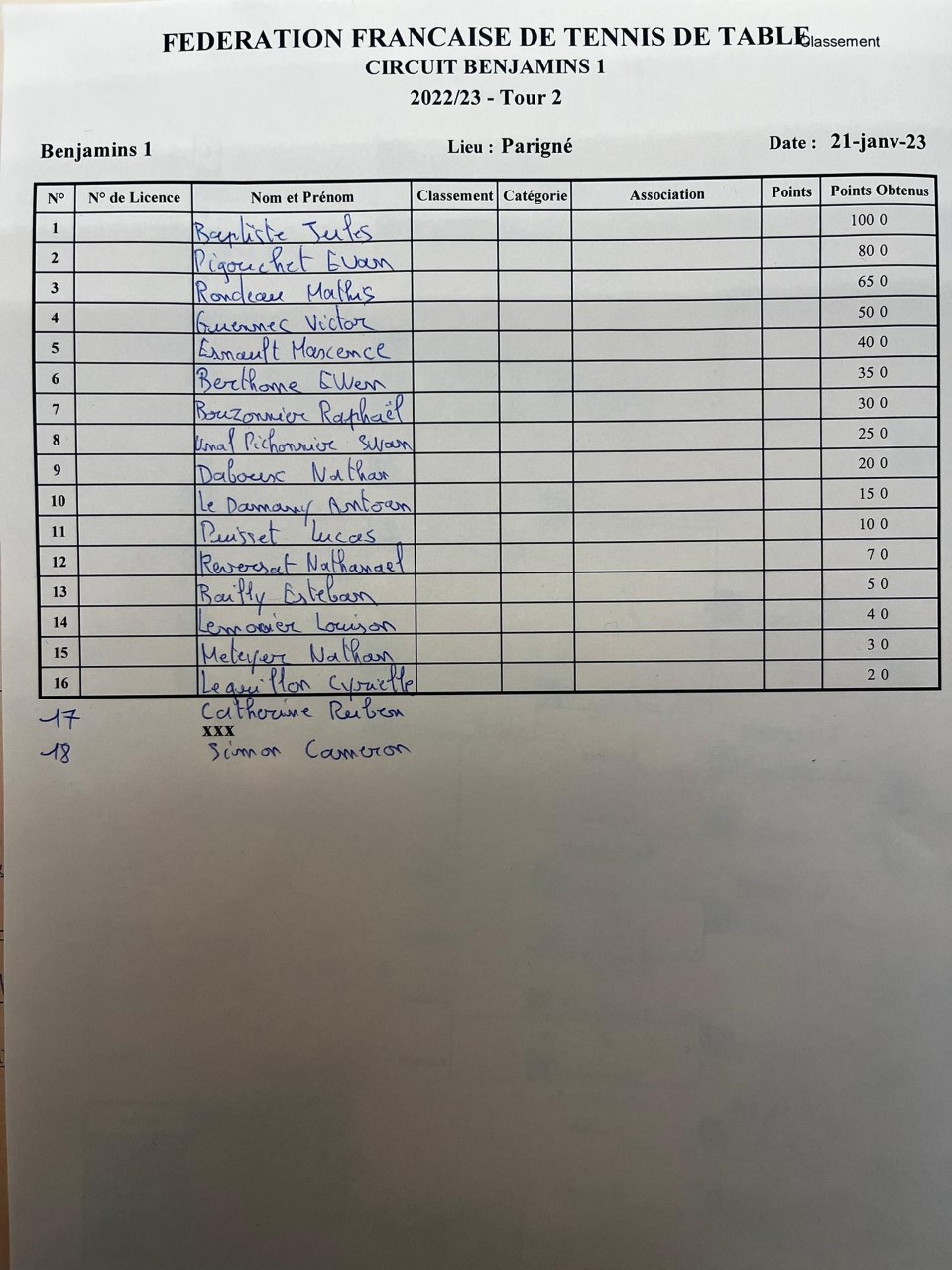 Vous trouverez ci dessous les résultats du deuxième tour de Circuit, Félicitations aux 180 inscrits, aux clubs présents et accueillants.
